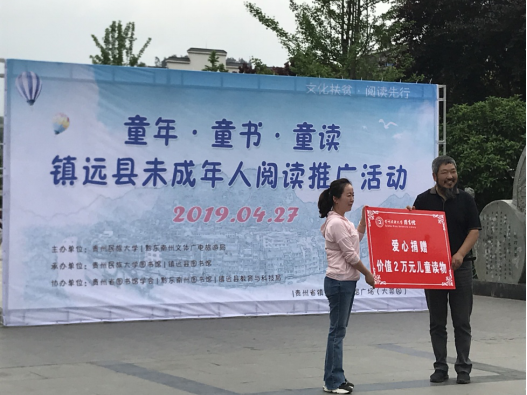 正值2019年贵州民族大学第五届“校园读书月”暨第24个“世界读书日”系列活动开展之际,贵州民族大学、黔东南州文体广电旅游局等多家单位合作协同,特别策划并组织了“文化扶贫·阅读先行”未成年人阅读推广活动,旨在助推镇远未成年阅读服务工作。