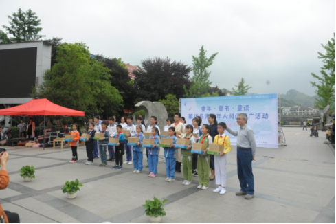 贵州民族大学图书馆向镇远县图书馆捐赠了价值2万元的儿童读物,向镇远县8所中小学校22名品学兼优的学生颁发“阅读之星”纪念品。并对他们寄语了新的期望。