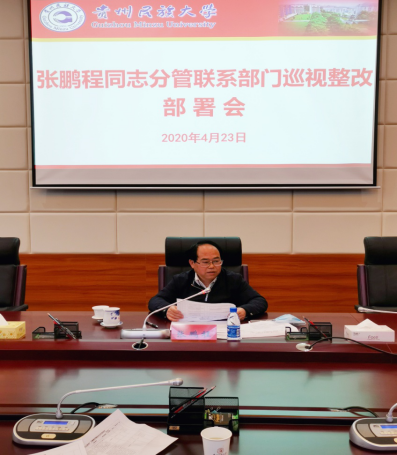 张鹏程要求各二级党委、各部门及时传达学习校党委书记褚光荣4月9日在十二届贵州省委第七轮巡视高等院校集中反馈会上的表态发言、4月14日在校党委专题研究部署省委巡视整改反馈意见工作会上的表态发言和工作要求,围绕学校党委巡视整改的工作部署,将整改工作抓实、抓细、抓到位。