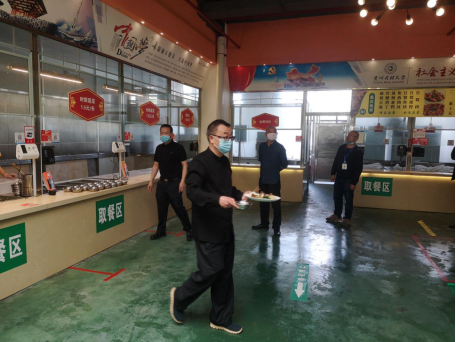 5月4日,校党委委员、副校长周杰组织学校疫情防控工作领导小组相关工作组,在大学城校区召开春季学期毕业生开学前筹备工作推进会。会上,周杰根据前期印发的《2020年春季学期毕业生开学工作责任清单》,逐一对账,销账。会后,周杰率队,赴学生食堂模拟就餐,进一步排查隐患。