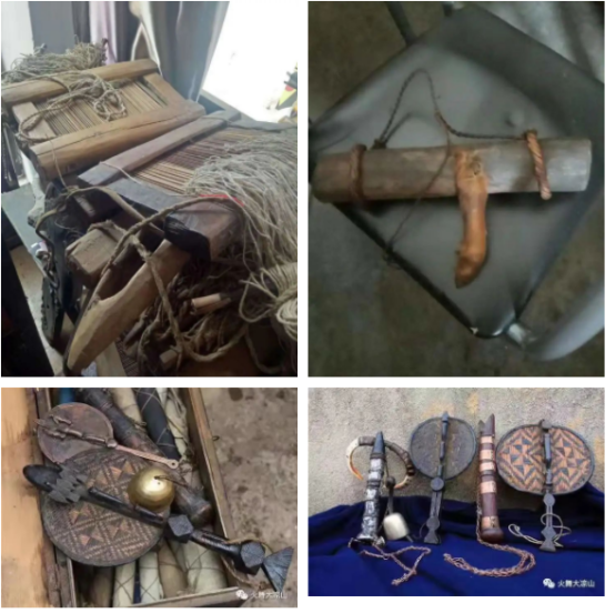 踏入王富慧老师家的那一刻,仿佛置身于一座“袖珍”的文物博物馆里,四处摆放着大量的彝族典籍文献以及珍贵的古旧文物,散发出淡淡的木质香气,绽放出彝族文化的独特魅力。印有彝族图腾样式的家居,亘古而神秘,让人有种心之所向,素履以往的冲动。