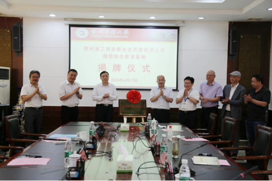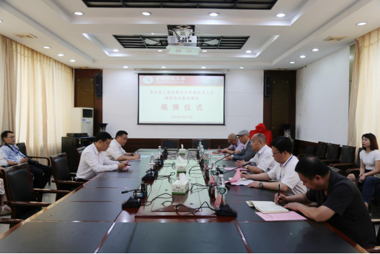 6月17日,贵州民族大学 贵州省工商业联合会共建民营经济人士理想信念教育基地揭牌仪式在花溪校区行政楼第一会议室举行。省工商业联合会副主席陈广臣,贵州民族大学党委委员、副校长熊元,省工商业联合会宣教部部长赵晓波以及继续教育学院相关负责人、教师代表参会。继续教育学院党委书记廖啟志主持揭牌仪式。
