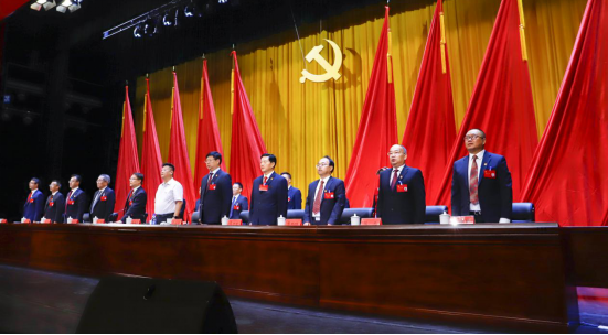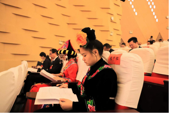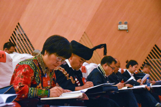 今天的大礼堂内气氛热烈,大会主席台正中悬挂由鲜艳的红旗簇拥着的中国共产党党徽,会场悬挂着“党建引领 学科谋篇 创新驱动 治理保障 为建设特色鲜明的高水平一流民族大学努力奋斗”横幅。党徽熠熠生辉,红旗鲜艳似火,会场庄严肃穆。