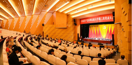 2020年9月7日上午,中国共产党贵州民族大学第二次代表大会在大学城校区C3活动中心大礼堂隆重开幕。大会主题是:高举中国特色社会主义伟大旗帜,以习近平新时代中国特色社会主义思想为指导,全面贯彻落实党的十九大精神和省十二次党代会精神,坚持党建引领,突出学科谋篇,注重创新驱动,强化治理保障,落实立德树人根本任务,加快学校内涵发展,推进学校治理体系和治理能力现代化,努力建设特色鲜明的高水平一流民族大学。来自全校各单位的代表们将在会议期间,围绕这一主题,共商学校发展和党的建设大计。