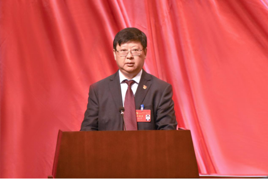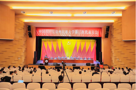 校党委书记褚光荣代表中国共产党贵州民族大学第一届委员会作题为《党建引领、学科谋篇、创新驱动、治理保障,为建设特色鲜明的高水平一流民族大学努力奋斗》的工作报告。