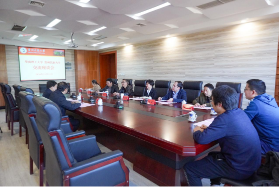 11月11日,华南理工大学与贵州民族大学交流座谈会在大学城校区行政楼第二会议室召开。我校副校长周杰,华南理工大学机械与汽车工程学院党委书记、教授、博士生导师晋刚出席,双方有关部门负责人参加。交流座谈会由我校公共关系处处长赵湛娇主持。