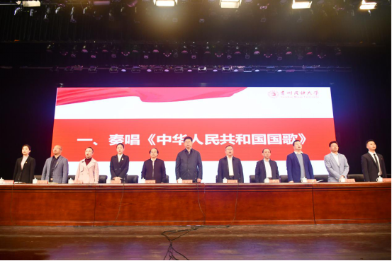 与会人员起立奏唱国歌