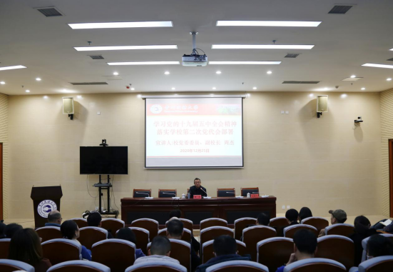 12月25日,校党委委员、副校长周杰在大学城校区第一报告厅为分管联系的部门的主要负责人、党员师生代表作党的十九届五中全会、省委十二届八次全会精神作宣讲。