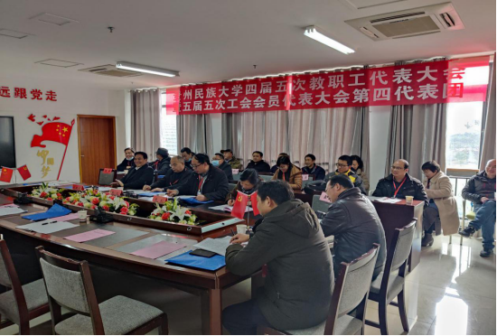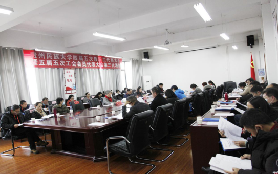 12月28日,贵州民族大学四届五次教职工代表大会暨五届五次工会会员代表大会(以下简称“两代会”)在大学城校区学生活动中心大礼堂举行,大会的主题是:坚持以习近平新时代中国特色社会主义思想为指导,深入学习贯彻党的十九大和十九届五中全会,省委十二届八次全会精神,突出特色办学,聚力内涵发展,加快建设特色鲜明的高水平一流民族大学。