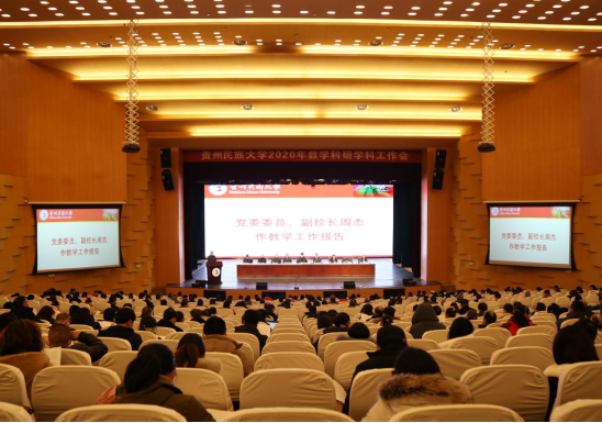为确保贯彻落实学校第二次党代会精神开好局起好步,推动学校教学、科研、学科工作高质量发展,12月31日,贵州民族大学2020年教学科研学科工作会在大学城新校区活动中心召开。校党委书记褚光荣出席,校长王林讲话,校领导张鹏程、杨声国、熊元、周杰、吴嶷晖、黄其松出席,副校长任达森主持会议。学校学院党政负责同志,各职能部门负责人,校院教学督导、正高职称教师,系主任、实验中心主任等400余人参会。