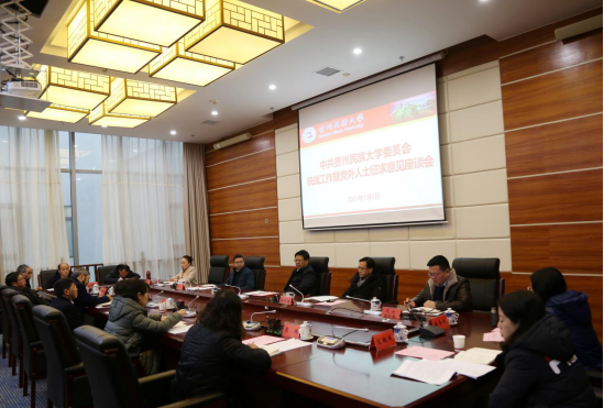 为高质量开好2020年度校党委领导班子民主生活会,继前期校党委向全校师生征求意见建议以来,2021年1月5日上午,学校召开2020年度校党委领导班子民主生活会会前征求意见座谈会,会议同时设立三个分会场,分别征求统战工作暨党外人士、高层次人才和青年教师代表及学科专班负责人、干部职工代表意见建议。校党委书记褚光荣,校党委副书记、校长王林,校党委副书记张鹏程分别主持三个分会场会议。校党委副书记杨声国,校党委委员、副校长熊元、周杰,校党委委员、纪委书记、省监委驻贵州民族大学监察专员吴嶷晖,校党委委员、副校长任达森、黄其松分别出席座谈会。