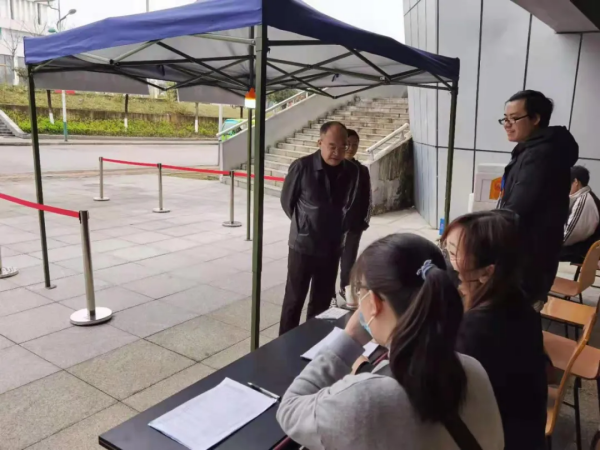 报到期间,校领导到报到点检查并指导工作,与现场工作人员和报到学生亲切交谈,希望按照有关要求,做好疫情防控措施,确保安全健康,以良好的精神状态投入到新学期的学习工作生活中去。