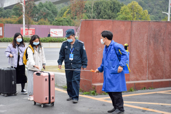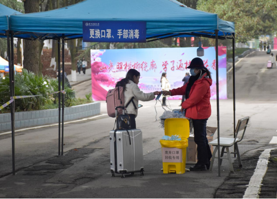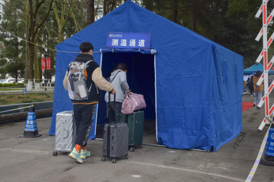 返校报到期间,学生佩戴口罩,经查验健康码、身份核验、测温、消毒、更换口罩等程序后,有序报到进入校园。按学校规定,学生统一从规定地点搭载校车进入校园。安保、物业、医疗人员、志愿者等竭力协助。相关部门依据学生返校批次联系属地交管部门做好报到现场交通疏导工作,严防校外车辆和无关人员入校。学院签到处安排专人值守,对返校学生进行登记,精准掌握学生返校信息。