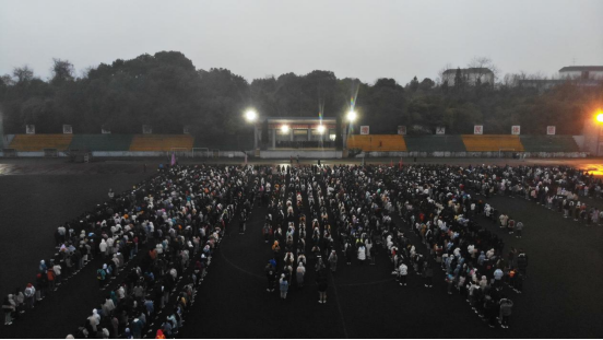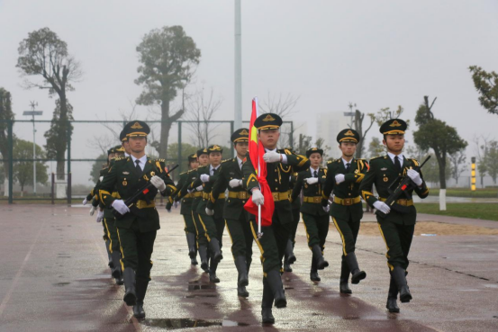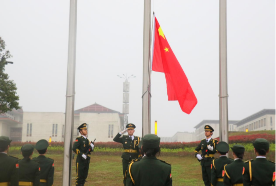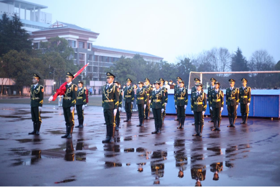 国旗方队迈着整齐划一、铿锵有力的步伐,护着鲜艳的五星红旗入场举行升旗仪式。全体师生庄严肃立,共同向国旗行注目礼,饱含深情地高唱国歌,国旗在雄壮激昂的国歌声中冉冉升起,在晨光中熠熠生辉。
