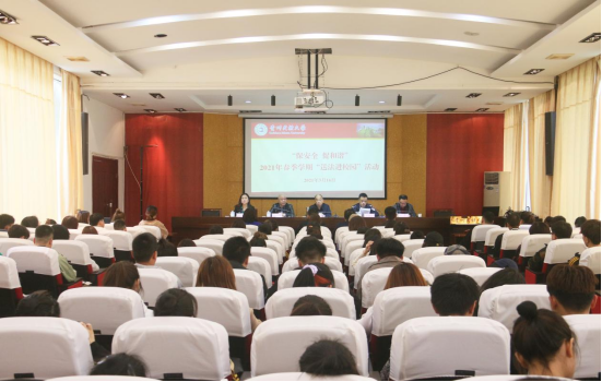3月16日,我校“保安全 促和谐”2021年春季学期“送法进校园”活动在花溪校区行政楼第五会议室举行。我校党委委员、副校长熊元出席并讲话,花溪公安分局银晖派出所所长刘静波,我校学工部部长、学生资助中心主任赵勇、保卫处处长欧阳宁康、音乐舞蹈学院党委书记陈懿出席,银晖派出所民警,音乐舞蹈学院师生代表参加活动。活动由陈懿主持。