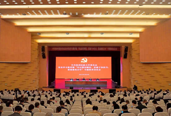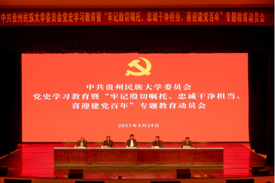 铭记党史强信心,砥砺奋进谱新篇。3月24日,贵州民族大学召开党史学习教育暨“牢记殷切嘱托、忠诚干净担当、喜迎建党百年”专题教育动员会,学习贯彻习近平总书记在党史学习教育动员大会上的重要讲话精神和视察贵州重要讲话精神,全面落实中央、省委、省委教育工委有关会议、通知要求,动员部署我校党史学习教育和“牢记殷切嘱托、忠诚干净担当、喜迎建党百年”专题教育。校党委书记褚光荣作动员讲话,校党委副书记、校长王林主持会议,校党委副书记张鹏程、杨声国,校党委委员、副校长任达森以及校党委委员奉振、任洁出席会议,全体处级干部,党支部书记、组织员、辅导员,各学院师生党员代表参会。
