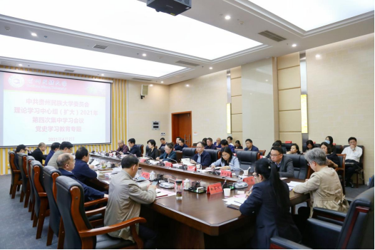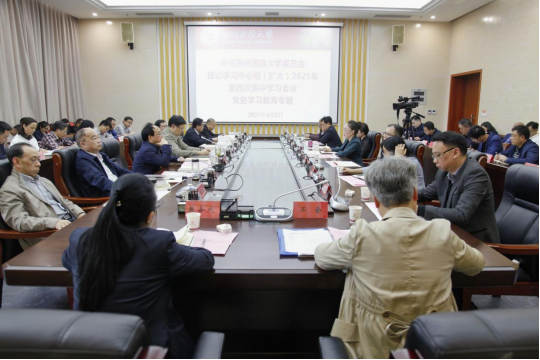 深学细悟,笃行实干。4月2日,贵州民族大学党委理论学习中心组(扩大)在大学城校区行政楼第七会议室举行2021年第四次集中学习会议暨党史学习教育专题学习会,集体研读习近平同志《论中国共产党历史》和《中国共产党简史》《习近平新时代中国特色社会主义思想学习问答》《毛泽东邓小平江泽民胡锦涛关于中国共产党历史论述摘编》等教材中的有关篇。校党委书记褚光荣主持并讲话,他强调,要深入学习党史有关教材,深刻铭记中国共产党百年奋斗的光辉历程,深刻认识中国共产党为国家和民族作出的伟大贡献,深刻感悟中国共产党始终不渝为人民的初心宗旨,在学习教育中进一步汲取推进高水平一流民族大学建设的奋进力量。