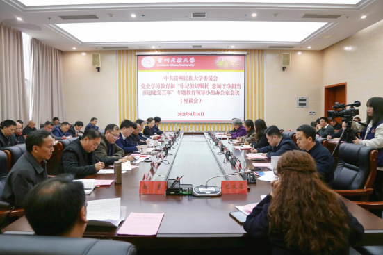 4月16日,中共贵州民族大学委员会党史学习教育和“牢记殷切嘱托、忠诚干净担当、喜迎建党百年”专题教育领导小组办公室会议在大学城校区行政楼第七会议室举行。会议听取了我校相关部门学院党史学习教育和“牢记殷切嘱托、忠诚干净担当、喜迎建党百年”专题教育进展情况汇报。党史学习教育和“牢记殷切嘱托、忠诚干净担当、喜迎建党百年”专题教育领导小组副组长、校党委副书记张鹏程、杨声国分别就高标准高质量抓好党史教育和专题教育,推动党史教育和专教育进一步走深走实作出部署。校党委委员奉振、任洁出席。
