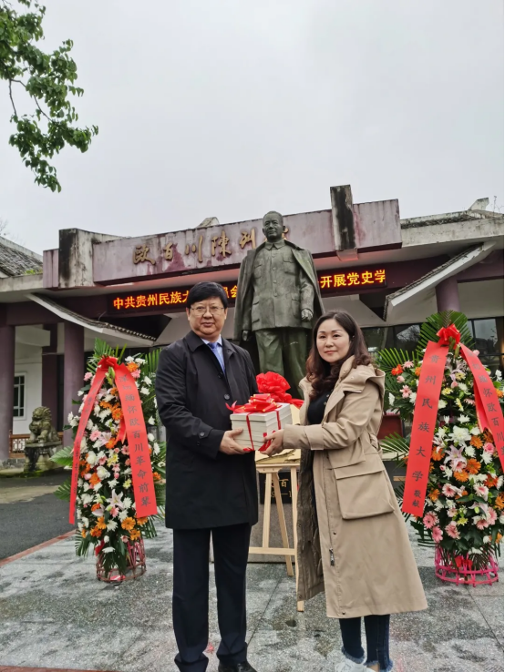 欧百川陈列馆馆长邓小敏向贵州民族大学赠书《欧百川》