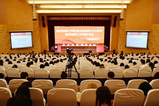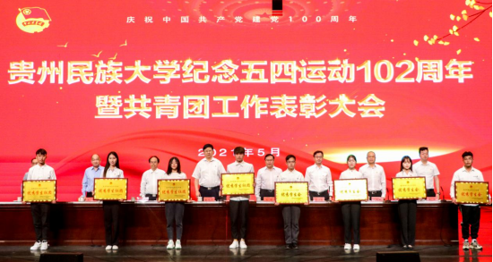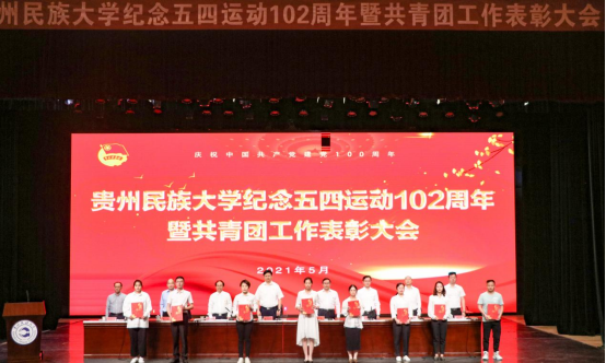 传承五四精神,恰是百年风华。为喜迎建党100周年,5月10日,贵州民族大学纪念五四运动102周年暨2020年度共青团工作表彰大会在大学城校区学生活动中心隆重举行。校党委书记褚光荣,校党委副书记、校长王林,校党委副书记杨声国,校党委委员、副校长熊元,校党委委员、纪委书记、省监委驻贵州民族大学监察专员吴嶷晖,校党委委员、副校长任达森,校党委委员、组织部部长奉振出席。贵州民族大学有关职能部门负责人、学院党委书记、分管学生工作副书记、团委负责人、团员代表参加会议。会议由校党委副书记张鹏程主持。在嘹亮的国歌声中,大会拉开帷幕。