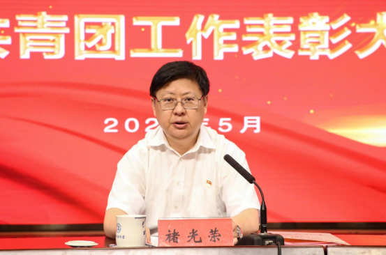 褚光荣以《肩负历史使命 坚定前进信念 用接续奋斗唱响青春奋进之歌》为题发表了讲话,他首先代表学校党委、行政向获得表彰的个人和集体表示祝贺。褚光荣在讲话中指出,近年来,贵州民大青年师生牢记嘱托,感恩奋进,主动担当,积极作为。在脱贫攻坚的主战场上,一批又一批民大学子通过“三下乡”“西部计划”,深入基层一线,助力脱贫攻坚,在祖国和人民最需要的地方默默奉献自己的青春,一起见证了贵州彻底撕掉千百年来绝对贫困的标签。在抗击新冠肺炎疫情的战役中,我校219名青年学生志愿者面对危难挺身而出,积极参与当地疫情防控,迸发出巨大的能量。用实际行动证明,贵州民族大学青年是大有可为的,为民大青年点赞、喝彩!校团委荣获“全省五四红旗团委”称号,这是对我校共青团工作的肯定,离不开全校所有共青团干部的共同奋斗。