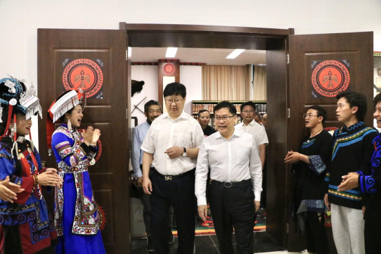 校领导和有关职能部门负责人一同参观了彝族服饰展演和彝族文物藏品专题展。