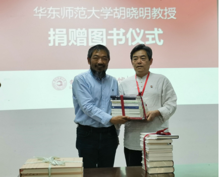 5月16日,贵州民族大学花溪校区逸夫图书馆举行“华东师范大学胡晓明教授捐赠仪式”。我校副校长熊元出席仪式,他代表学校对胡晓明教授表示衷心的感谢。图书馆馆长卢云辉代表图书馆接受胡晓明校友的捐赠文献。胡晓明教授系中国古典学会会长,华东师范大学教授、博士生导师、图书馆馆长,他捐赠的图书包括《万川之月》《不寐》等著作16种20册。