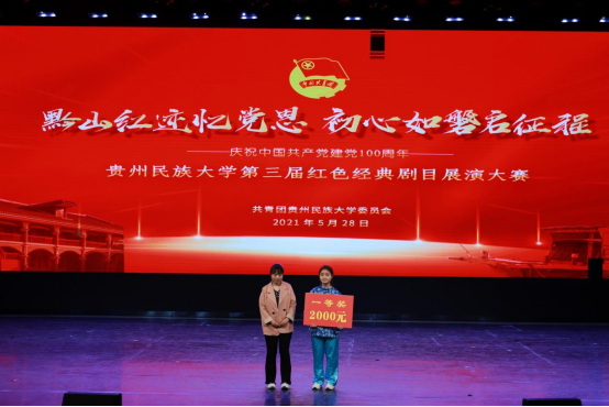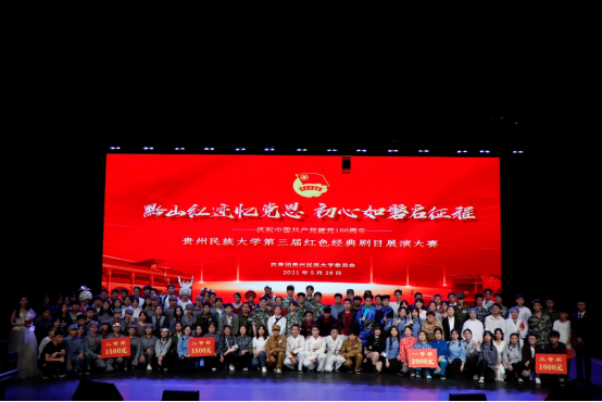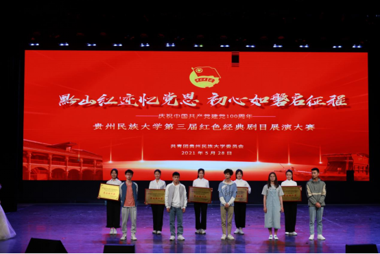 5月28日,为庆祝中国共产党成立100周年,教育引领广大团员青年铭记党史,厚植爱党爱国情怀,贵州民族大学团委在大学城校区学生活动中心举办了“黔山红迹忆党恩,初心如磐启征程”红色经典剧目展演大赛决赛。贵州民族大学党委副书记张鹏程,校党委委员、组织部部长奉振,校党委委员、宣传部、统战部部长任洁出席活动。团省委学校部副部长刘艳,团省委宣传部副部长、贵州日报报刊社时政新闻评论部副主任许邵庭,中国西部民歌大赛银奖获得者、国家文化部杂志《音乐生活报》、贵州省委宣传部外宣期刊《贵州画报》封面人物阿娜丹 ,贵州大学团委副书记刘魁,贵州师范大学团委书记施昆,贵州医科大学团委副书记胡洪瑞,贵州开放大学团委副书记李雪芬,贵州商学院团委书记吴晶鑫担任参赛评委。