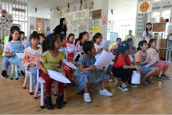 本次兴趣课堂,志愿者现场教小朋友们演唱了《最初的梦想》,孩子们手拿歌词,和着节奏,跟着志愿者一字一句歌唱起来,稚嫩的童声,充满着对于未来的憧憬与幻想。