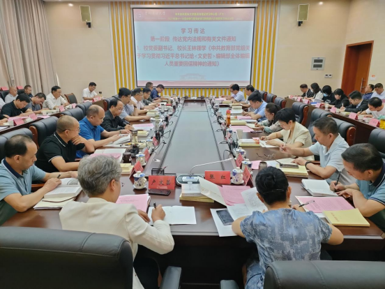 会上,校党委副书记、校长王林传达学习《中共教育部党组关于学习贯彻习近平总书记给<文史哲>编辑部全体编辑人员重要回信精神的通知》,校党委副书记张鹏程传达学习《中国共产党普通高等学校基层组织工作条例》