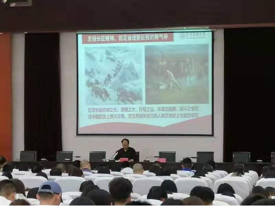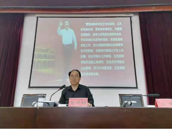 张鹏程围绕主题,从“深入学习领会习近平总书记关于党的历史的重要论述,充分认识开展党史学习教育的重大意义”“回望总结,全面了解中国共产党百年奋斗的光辉历程和历史性贡献”“贯彻落实习近平总书记视察贵州重要讲话精神,以高度的思想自觉政治自觉行动自觉喜迎建党百年”“高标准高质量抓好党史学习教育,切实把学习成效转化为推动工作的强大动力”四个方面为师生们进行了深入阐述。
