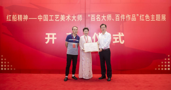 据悉,此次主题展由中国工艺美术学会和嘉兴市人民政府共同举办,来自全国的100多位中国工艺美术大师创作的100多件(套)工艺美术作品惊艳亮相。这些作品以“红船精神”为主线,以中国共产党成立百年来的大事件、大变化作为创作题材,精心创作而成,作品涵盖了工艺雕刻、工艺陶瓷、工艺印染、工艺织绣等11个大类,用艺术的形式,展现全体工艺美术工作者,对党的无限热爱和对祖国的赤子情怀。