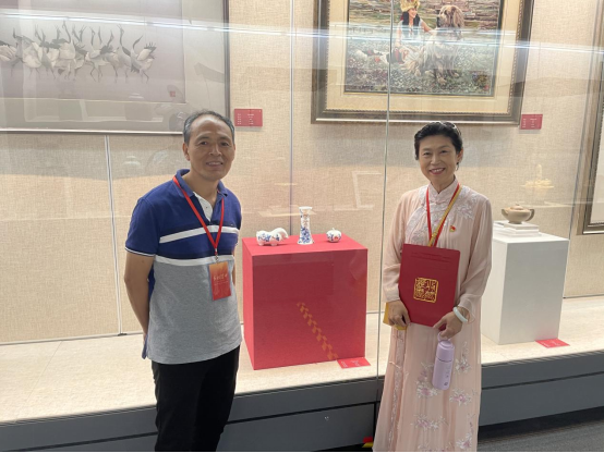 6月18日,“红船精神——中国工艺美术大师‘百位大师、百件作品’红色主题展”在嘉兴博物馆开展。贵州民族大学陶瓷研究院院长、中国工艺美术大师曾瑾教授受邀出席活动并捐赠了与中国工艺美术大师邱含联袂创作的作品《奋进·求索·筑梦》,该作品将由南湖革命纪念馆永久收藏。