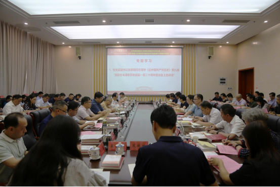 党办、校办、纪委、组织部(党校)、宣传部(文明办)、统战部、机关党委、学工部、研工部、教工部、校工会、校团委、教务处、科研处、人事处、发规处、招就处、国际交流与合作处、财务处、审计处、国资处、学生资助中心、后勤处、保卫处、离退处、图书馆、档案馆及二级党委(党总支)书记(含主持工作副书记)参加学习。