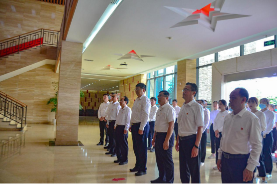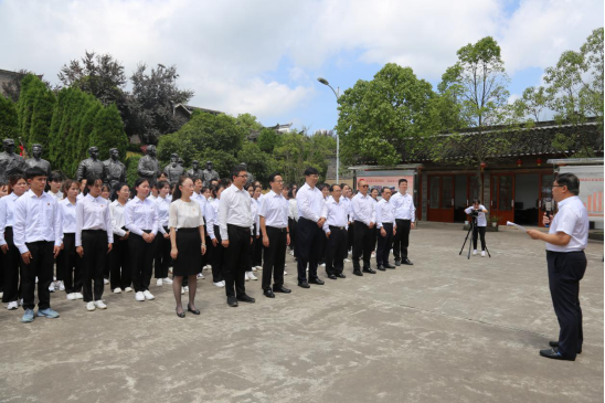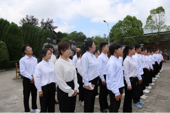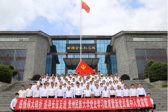 在中国共产党百年华诞即将到来之际,6月26日,贵州民族大学新党员代表入党宣誓活动在猴场会议会址举行。校党委书记褚光荣领誓并讲话,校党委副书记、校长王林现场讲授专题党课。校领导张鹏程、杨声国、吴嶷晖、任达森、黄其松以及校党委委员奉振、任洁出席,80名新党员及教师党员代表一同走进红色革命圣地猴场会议会址,接受红色洗礼。
