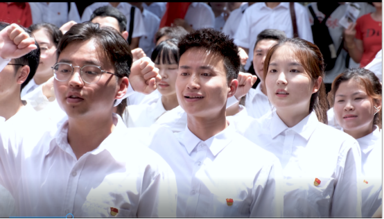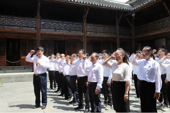 在猴场会议会址内,面对鲜红的党旗,褚光荣带领新党员举起右拳庄严宣誓:“我志愿加入中国共产党,拥护党的纲领,遵守党的章程,履行党员义务,执行党的决定,严守党的纪律,保守党的秘密,对党忠诚,积极工作,为共产主义奋斗终身,随时准备为党和人民牺牲一切,永不叛党。”誓词铮铮、字字千钧,铿锵有力的宣誓,响彻会址上空。坚定的承诺,80名新党员受到思想的洗礼。