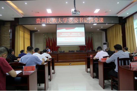 褚光荣从“深入学习领会习近平总书记关于党的历史论述,充分认识开展党史学习教育的重大意义”“回望总结,全面了解中国共产党百年奋斗的光辉历程和历史性贡献”“贯彻落实习近平总书记视察贵州重要讲话精神,以高度的思想自觉、政治自觉、行动自觉喜迎建党百年”“高标准高质量抓好党史学习教育,切实把学习成效转化为推动工作的强大动力”四个方面进行讲述。