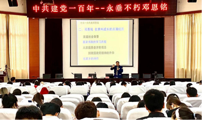 6月25日下午,“党史教育——中共建党一百年,永垂不朽邓恩铭”讲座在我校花溪校区15号教学楼圆形会议中心举行。本次讲座由校党委宣传部主办、非物质文化遗产博物馆承办,邀请贵州民族大学水书文化研究院原副院长潘朝霖教授主讲。