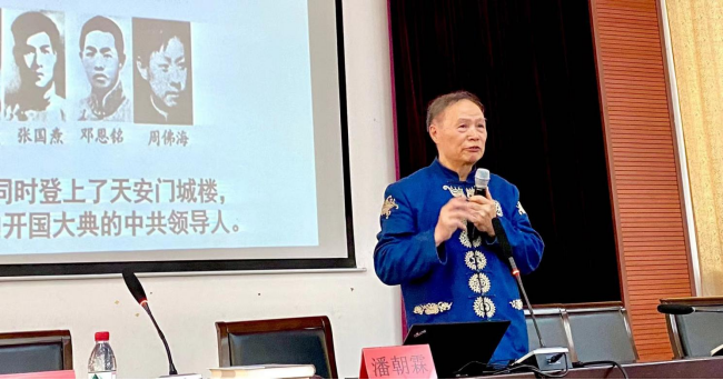 潘朝霖教授以文字与图片相结合的方式为师生讲述了中国共产党的发展历史与邓恩铭烈士的事迹。讲座围绕中共一大、邓恩铭在贵州成长的点滴经历、邓恩铭在山东投身革命、人民缅怀邓恩铭四个方面展开。
