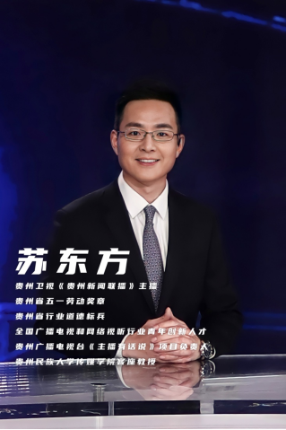 苏东方老师是贵州卫视《贵州新闻联播》主播,贵州省五一劳动奖章获得者,贵州省行业道德标兵,全国广播电视和网络视听行业青年创新人才,贵州广播电视台《主播有话说》项目负责人。