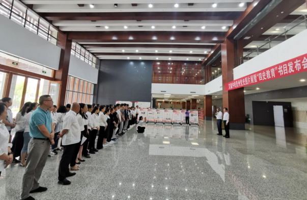 7月1日上午,时值庆祝中国共产党百年华诞,图书馆在新校区思雅馆隆重举行“文献中的贵州党史图片展暨‘四史教育’书目发布会”活动。校党委副书记杨声国出席并讲话,校党委委员、宣传部、统战部部长任洁,马克思主义学院院长周俊,传媒学院党委书记吕映红,民族医药学院党委书记龙尧、党委副书记赵宇中,部分民主党派、无党派人士出席活动,图书馆班子成员、全体党员、部分馆员、图书馆志愿者以及读者代表近60人参加此次活动。图书馆馆长卢云辉主持活动仪式。
