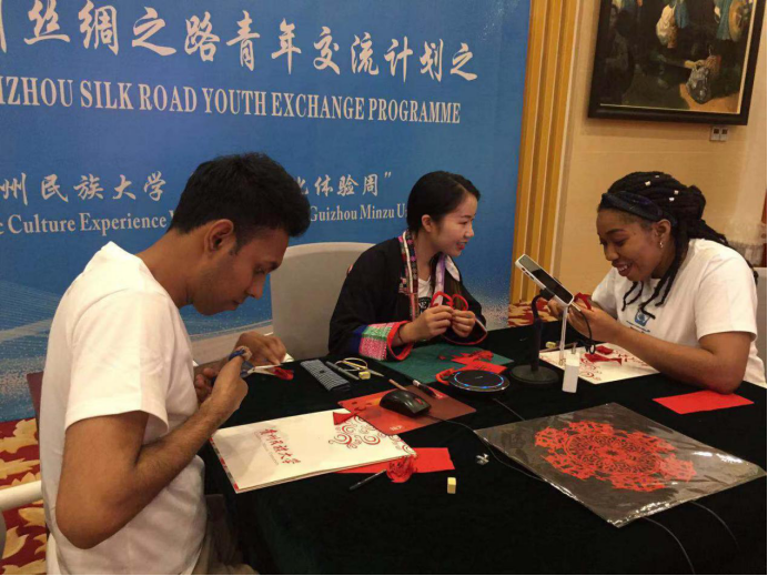 在为期7天的“民族文化体验周”活动中,贵州民族大学杨昌儒教授以贵州民族文化为主题作开课第一讲,并且组织了中国汉字及书法赏析、HSK考试介绍、实用汉语写作、HSKK考试介绍、商务汉语等语言课程,呈现了剪纸、茶文化、蜡染、五禽戏、陶瓷等文化体验课程。贴合外国学员水平的语言课程与文化体验课程穿插设置,让各国学员学习兴趣浓厚、收获颇丰。