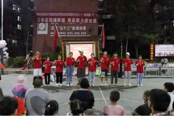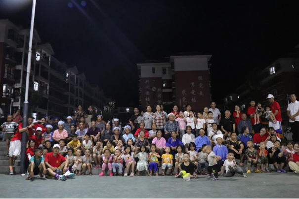 8月4日,服务团在幸福移民社区篮球场以“分享+表演”的形式开展文艺汇演暨实践成果汇报。贵州省黔南州民宗局民族宗教工作研究中心副主任蒙畅,惠水县民宗局局长吴咏梅、副局长罗大龙、惠水县幸福移民社区党支部书记何家燕、主任丁成富等人出席,社区居民及服务团全体人员参加。汇演中,社区小朋友们表演了《听我说 谢谢你》《红星闪闪》等节目......,整场汇演现场气氛热烈,居民们更是学在其中,乐在其中。最后,大家齐唱《没有共产党就没有新中国》,此次汇演在歌声中落下帷幕。