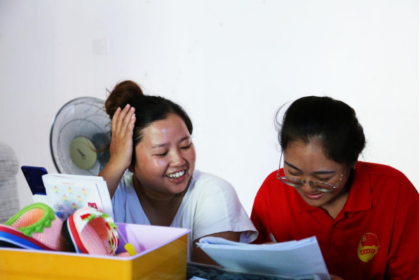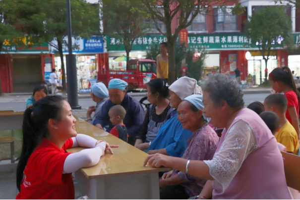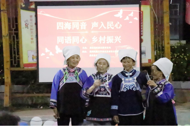 志愿者用布依歌曲引导社区居民积极加入“双语角”活动