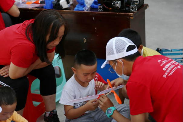 服务团以“科技强国,让梦启航”为主题,在幸福移民社区、九龙村开展了科普小课堂、微型科普展,向参加活动的大人孩子们讲解飞机组建原理、智能垃圾桶工作原理,展示VR眼镜、3D打印机、仿生机器人、磁悬浮地球仪、无人机等微型科技产品,并引导当地孩子动手组装橡皮筋动力模型飞机、小型智能垃圾桶。服务团的此次科技推普,开阔了当地居民的眼界,体验到了科技的魅力,使科学思想在社区居民和九龙村村民心中扎根,进一步促成爱科学、讲科学、用科学的社会风尚,也在小朋友的心中埋下一颗科技的种子,增加小朋友对未来科技世界的期待。