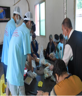 团队为敬老院老人包饺子、给老人们发零食