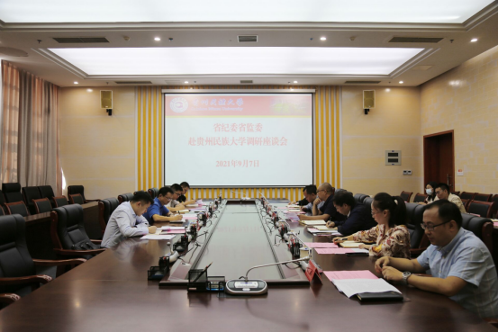 9月7日,省纪委常委、省监委委员万庭祥到贵州民族大学调研指导工作。省纪委省监委第六监督检查室负责人和相关人员陪同,贵州民族大学党委委员、纪委书记、省监委驻贵州民族大学监察专员吴嶷晖,学校组织部、宣传部、人事处、纪委等相关职能部门负责人和有关人员参加会议。