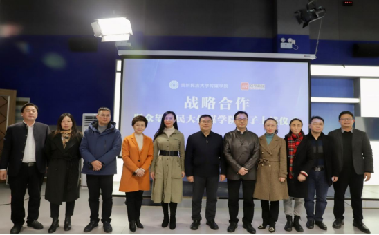 为响应省委宣传部“部校共建”工作部署,充分整合传媒教育与传媒平台双方的资源优势,建立校企在人才、信息、技术等方面的资源共享平台,11月17日,我校传媒学院与多彩贵州网众望新闻中心在传媒学院演播厅举行战略合作协议签约仪式。