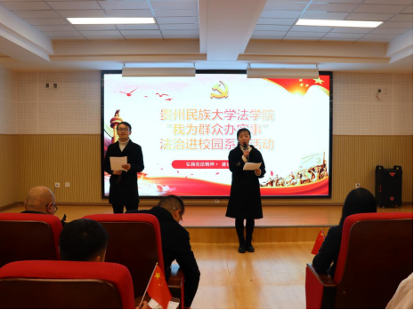 为贯彻落实习近平法治思想和党的十九届六中全会精神,进一步加强对未成年人的法治宣传教育,提升青少年自我防范能力, 12月2日下午,在第八个国家宪法日和第四个“宪法宣传周”之际,贵州民族大学法学院、花溪区司法局、花溪区团委“政校”法律合作框架协议签订暨法治进校园活动在花溪区第二中学举行。法学院、花溪区司法局、花溪区团委相关负责同志,法学院、花溪区第二中学师生代表近500人参加了活动。