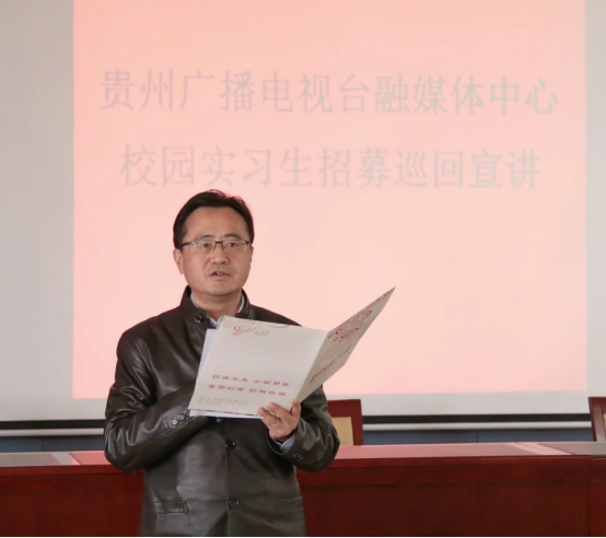 12月3日下午,贵州广播电视台融媒体中心校园实习生招募暨贵州省高校大学生短视频大赛巡回宣讲走进我校传媒学院。贵州广播电视台总编辑哈思挺,学校党委副书记杨声国出席并讲话。校党委委员、宣传部部长、统战部部长任洁,贵州广播电视台融媒体中心主任王丹出席宣讲会。传媒学院党政班子和200余名师生参加会议。